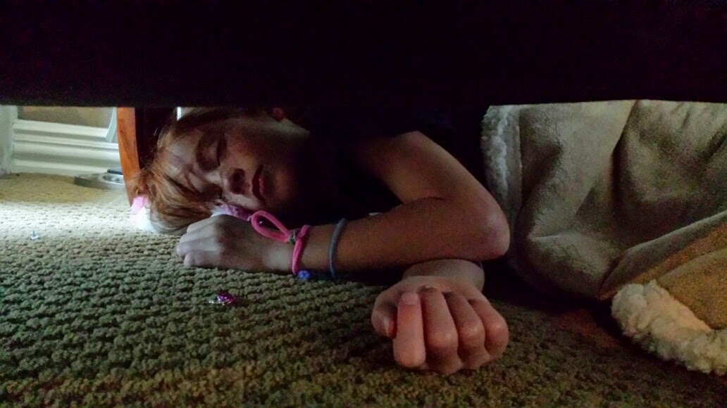Kate and Abby spent the night. We watched movies, ate brownies and popcorn, and stayed up late.